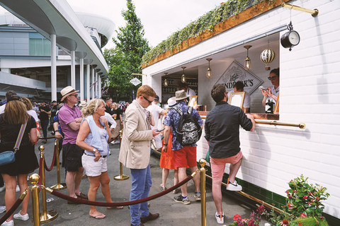 Eccentrically styled pop-up bar and seating space for Hendrick's Gin's summer event at Lords Cricket Ground.